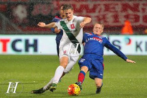 Foto: Joachim Andersen in duel met Sam Larsson. (Herman Oude Alink)
